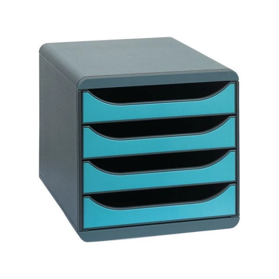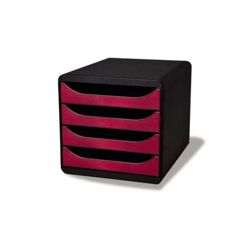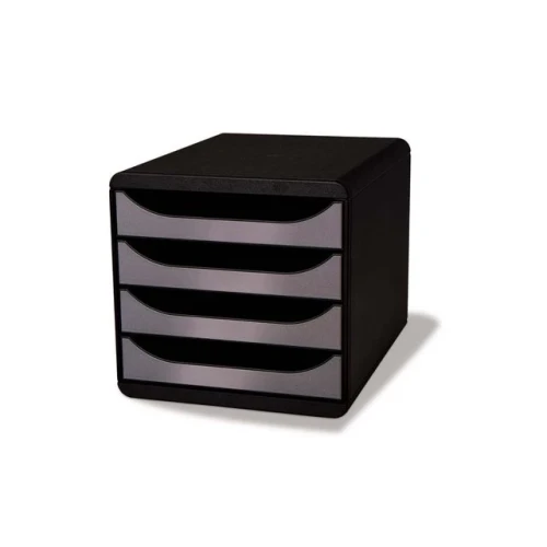 Exacompta BIG-BOX Black Office skuffekabinett. Skuffekabinett med 4 skuffer på 55 mm for oppbevaring av A4+ dokumenter. Glatt skuffehandling med stopp. Monocoque hus som tillater høy belastning. Størrelsen passer perfekt på skrivebordet. - 4 skuffer, hver 55 mm. - Glatt skuffehandling med stopp. - Monocoque hus for høy belastning.