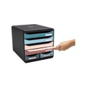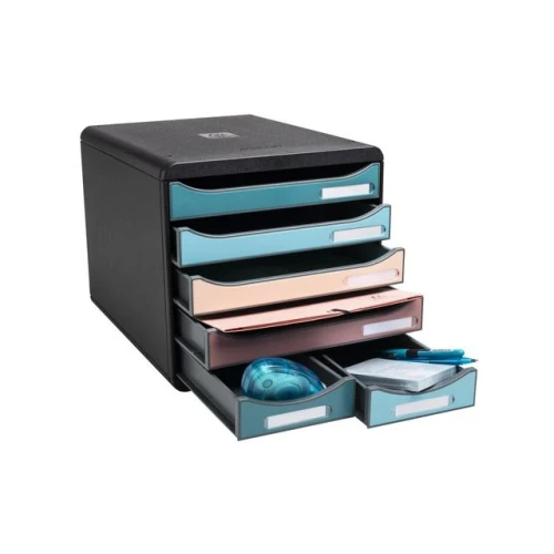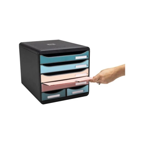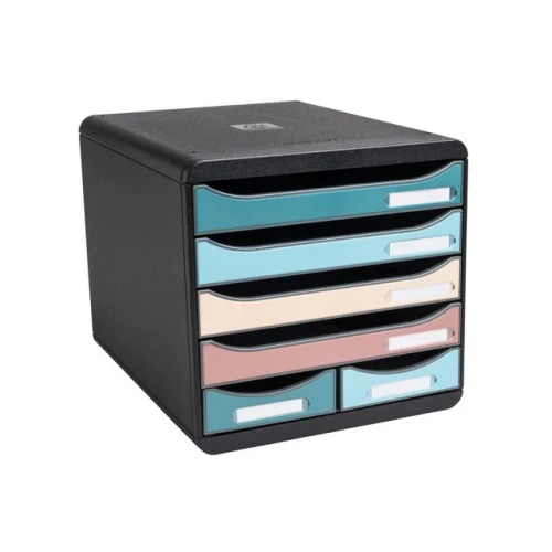 Mykhet og naturlighet for din organisering. Skandi bringer både stil og funksjonalitet til din arbeidsplass, enten det er på kontoret, hjemmekontoret eller på skolen. Dette elegante arkivmodulet består av seks skuffer: fire store og to små, som gir deg rikelig med plass til å organisere dokumenter i A4- og A4+-format, samt elastiske mapper, konvolutter og små kontorartikler som post-it-lapper, binders og til og med kaffekapsler. Med et fokus på både trend og økologi er Skandi Big Box Maxi Skandi en perfekt løsning for miljøbevisste forbrukere. Skuffenes åpne front gjør det enkelt å skyve dokumentene direkte på plass. Skuffene er også designet for å være behagelige i bruk, med en jevn og stillegående bevegelse, samt en sikkerhetsstopper for å forhindre uønsket åpning. Du kan enkelt stable flere moduler oppå hverandre takket være de fire hakkene som sikrer stabiliteten. Skuffenes åpne design gir deg muligheten til å arkivere dokumenter uten å måtte åpne dem, og den jevne bevegelsen sikrer enkel tilgang til innholdet. - Romslig Organisering: 6 skuffer, 4 store og 2 små for A4- og A4+-dokumenter - Allsidig Bruk: Egnet for kontor, hjemmekontor eller skole - Åpen Front: Enkel direkte innsetting av dokumenter - Stillegående: Skuffene glir jevnt og er utstyrt med sikkerhetsstopper - Stablingsmulighet: 4 hakk for enkel og stabil stabling - Yttermål HxBxD: 347 x 278 x 271mm