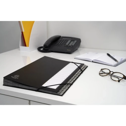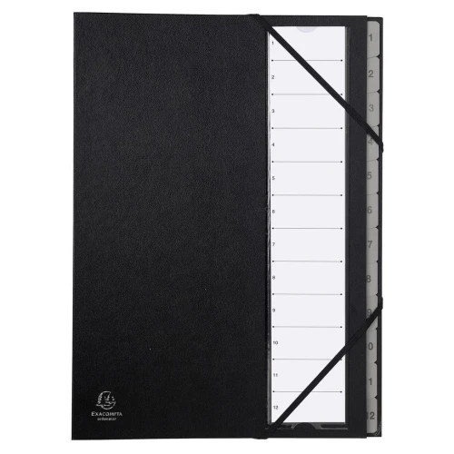 Ideell sorterings-mappe for transport av alle stansede eller uthullede dokumenter. Sorterings-mappe med ekspanderende ryggrad for høy kapasitet. Ideell for transport av alle stansede eller uthullede dokumenter. Et langvarig produkt gir det sterke dekselet av polypropylen. Etikettholder på 1. side for enkel identifikasjon av rom. - Sorteringsmappe A4 Exacompta 1-12 - Etikettholder på 1. side for enkel identifikasjon av rom