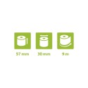 våre termiske kvitteringsruller og kredittkortruller, perfekte for dine transaksjonsbehov. Vår termiske kvitteringsruller er laget av 55g/m2 papir uten fenol og har dimensjoner på 57x30mm med en lengde på 9 meter, pluss eller minus 2 meter. Med en standard 12 mm kjerne passer disse rullene for alle merker av kredittkortterminaler. Den svært følsomme papirkvaliteten sikrer en tydelig og lesbar utskrift for dine kvitteringer og kredittkorttransaksjoner. Vår advarsel om slutten på rullen gir deg beskjed når det er på tide å bytte ut rullen.