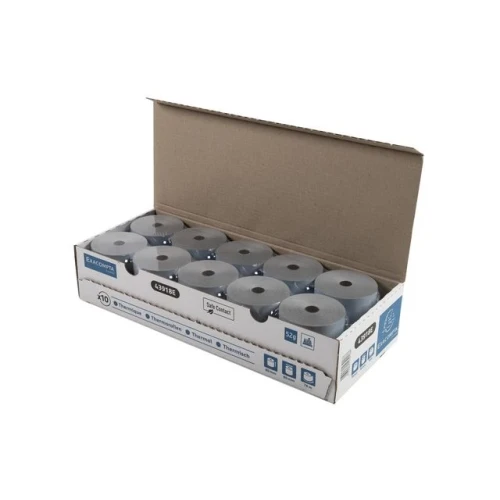 Termorull laget av et svakt blågrått papir som er motstandsdyktig mot varme, lys og fuktighet, og som garanterer et langvarig avtrykk på minimum 35 år. Våre ruller er produsert uten bruk av kjemiske utviklere, og de er BPA- og fenolfrie, noe som gjør dem trygge for helsen din. De er til og med godkjent for direkte kontakt med mat, slik at du kan være trygg på at dine transaksjoner er sikre. Vårt miljøvennlige papir er FSC-sertifiser