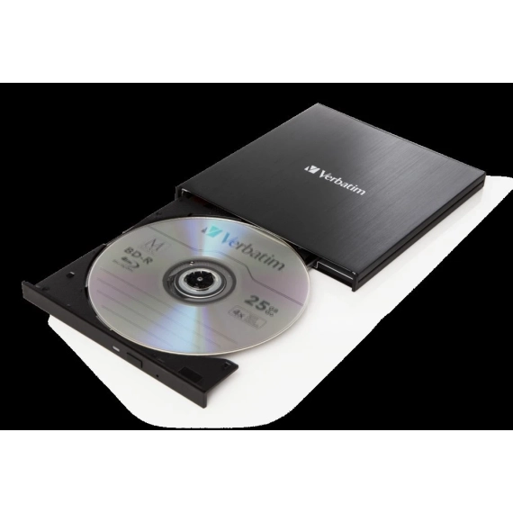 Keep your data safeOptical Discs are fast becoming the most reliable media to archive your data on. Unfortunately more and more notebook vendors choose to leave the optical drive out of their notebooks in favour of slim designs. Verbatim has the solution with the 4K Ultra HD Blu-ray writer. Use it to create a back-up of all the important files that you don't want to lose, family pictures, videos, accounting documents etc. Product Details: Slimline Blu-ray writer with 4K Ultra HD Blu-ray playback USB 3.1 GEN 1 with USB-CTM connection 6x maximum write / 4 x maximum read speeds for BD-R/BD-R DL Compact and lightweight, ideally suited for use with a notebook or ultrabook Power provided by the USB port - no need to carry a bulky power adapter Includes award-winning BD/DVD/CD burning software Stores up to 100GB on a BDXL Disc / 8.5GB on a Double Layer DVD / 4.7GB on a standard DVD Fully compliant with MDISC archiving technology Includes a FREE 25GB Verbatim Blu-ray MDISC