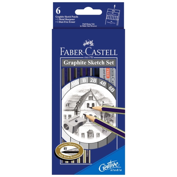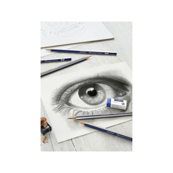 Grafittblyantene Faber-Castell Goldfaber 1221 er den perfekte blyanten til tegning, og den passer like godt for studenter som for kunstnerspirer. Blyet er laget av finmalt grafitt og leire, noe som gir en jevn tekstur og flotte tegninger. Den innovative SV-limeprosessen, som går ut på at blyet er festet til trevirket langs hele blyantlengden, gjør det ekstra vanskelig å knekke blyet. Den sekskantede grafittblyantens kropp er laget av bærekraftig fremstilt treverk, og den er dermed mindre skadelig for miljøet.