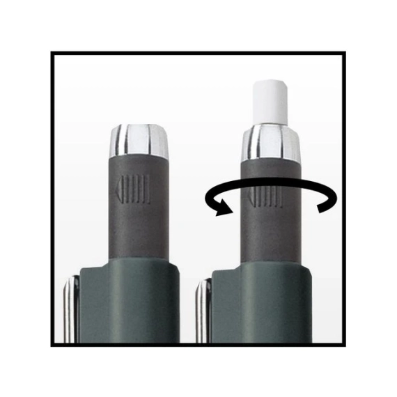 Trykkblyanten Faber-Castell GRIP 1345 er et elegant og praktisk skriveredskap. Den har et gummigrep som gir et sklisikkert grep, slik at du kan føre pennen presist uten at den glipper gjennom fingrene. Denne trykkblyanten bruker 0,5 mm bly som er ideelt til skjønnskrift. Blyet er inntrekkbart, slik at du trygt kan oppbevare blyanten i lommen eller i en veske. Den har et fjæringssystem og et deksel som kan trekkes over for å beskytte den mot skader. Trykkblyanten har også et viskelær i endehetten som skrus ut og gjør det enkelt å rette opp feil. Den elegante, svarte metallkroppen har også en praktisk klips til å feste blyanten til en lomme, notatblokk eller saksliste.