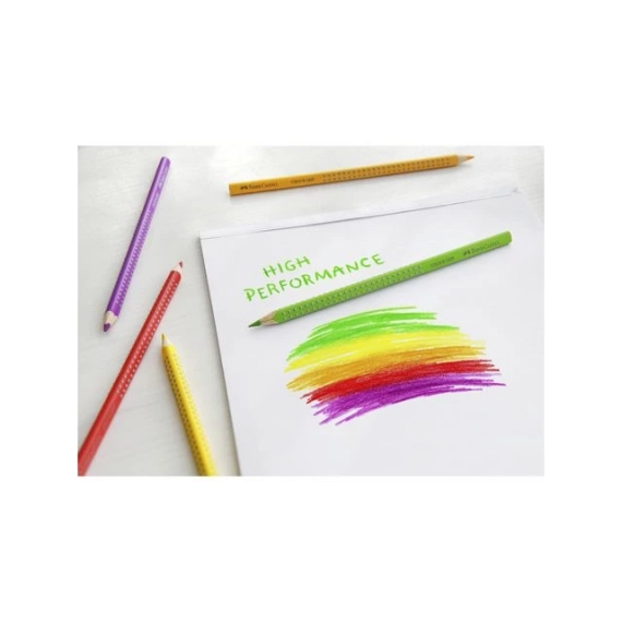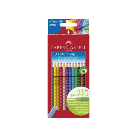 Faber-Castell Colour GRIP-fargeblyantene er utviklet for å være best mulig å bruke når du tegner. Den trekantede utformingen gjør at man kan tegne uanstrengt, og det patenterte myke grepet sikrer at blyanten ikke sklir. Blyet har en ekstra dyp pigmentering som gir utrolig levende farger. Det er også helt innkapslet og festet til trevirket ved hjelp av SV-liming, noe som gir en god knekkmotstand. I tillegg er fargene vannløselige. Det betyr at du kan bruke en pensel og litt vann for å lage flotte akvarelleffekter i tegningene dine. Fargene kan også vaskes ut av de fleste tekstiler. Disse fargeblyantene egner seg for både høyre- og venstrehendte, og har et eget felt til navnet ditt. I tillegg kommer over 95 % av treverket i disse førsteklasses blyantene fra FSC®-sertifiserte og bærekraftige kilder, noe som gjør dem til et godt valg for den miljøbevisste.