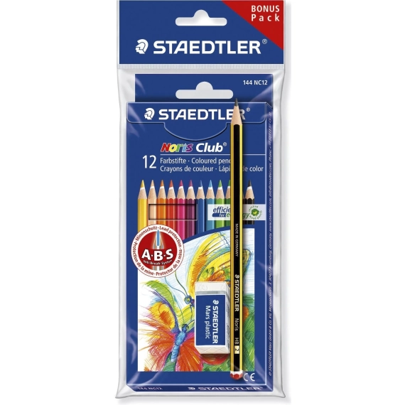 Denne fargeblyanten bruker et spesielt mykt bly som gir dype og sterke farger på arket. STAEDTLER Noris Club® fargeblyant kommer i en rekke forskjellige farger, slik at du kan lage morsomme og detaljrike tegninger. Blyantens sekskantede form gjør det komfortabelt å skrive med den, noe som betyr at den ikke så lett ruller ned fra bordet. Den er utformet med et unikt antibruddsystem der blyet er forsterket av et hvitt beskyttelseslag for å øke bruddstyrken. Blyanten er konstruert for å veie lite og spisses lett med en hvilken som helst blyantspisser.