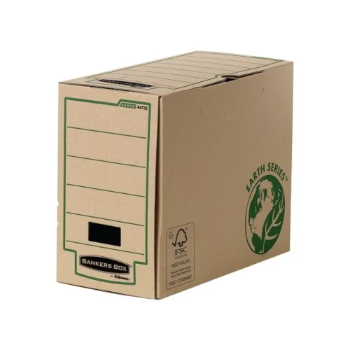 Arkiveske, Bankers Box® Earth Series. Eske til oppbevaring av A4- og A4+-dokumenter. Låseklaff sørger for at esken er forsvarlig lukket. Stort etikettområde og fingerhull på siden av esken, slik at esken er lett å ta ut av reolen. - Innvendige mål (HxBxD): 33x14,7x25 cm - Utvendige mål (HxBxD): 35x15x26 cm - Produsert i sertifisert FSC-recycled, som betyr at eskene er fremstilt av 100 % gjenbruksmaterialer.