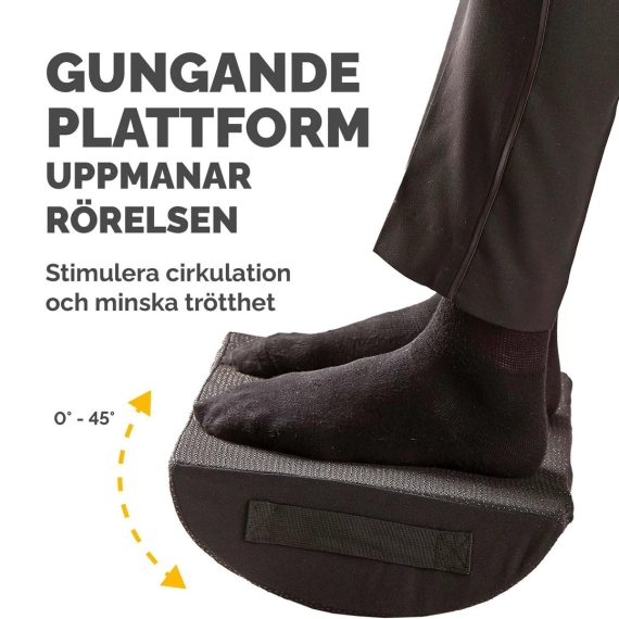 Designet for å redusere ubehag i rygg og ben ved å støtte føttene og oppmuntre til riktig ergonomisk holdning. Reduserer muskeltretthet ved å avlaste trykket bak på lårene og vippefunksjonen øker bevegelse og sirkulasjon. De innebygd bærehåndtakene gjør det enkelt å transportere fotstøtten uansett hvor du jobber. Støtten er laget av 93 % pre-consumer resirkulert materiale, noe som resulterer i et lavere karbonavtrykk sammenlignet med nytt skum. - Ergonomisk fotstøtte - Vippefunksjoner - Bærehåndtak - Materiale puten: skum av 93% resirkulert materiale - Materaile stoff: 100% resirkulert polyester