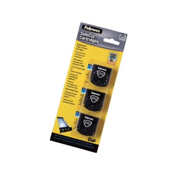 Sikre erstatningsblader for presis kutting med SafeCut™-beskyttelse. FELLOWES SafeCut knivsett inneholder tre erstatningsblader som passer til Neutron, Neutron Plus, Proton og Electron papirkuttere. Settet inkluderer ett rett blad, ett bølget blad og ett perforert blad, alle innkapslet i SafeCut™-kassetter for trygg bruk. Passer til Neutron, Neutron Plus, Proton og Electron papirkuttere Inkluderer 1 rett, 1 bølget og 1 perforert blad Hver kniv er innkapslet i SafeCut™-kassett for ekstra sikkerhet