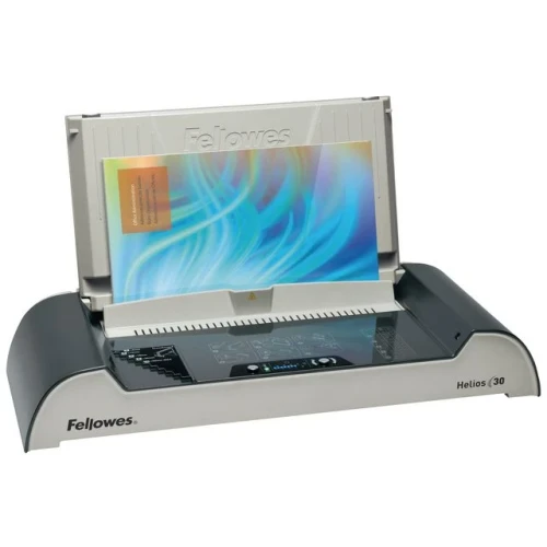 Lamineringsmaskin, Fellowes® Helios 30 termisk lamineringsmaskin til liminnbinding, ideell til mellomstore prosjekter. Med HeatShield, en sikkerhetsbarriere som gjør at ingen brenner seg under laminering. - LED-kontrollpanelet sikrer enkel betjening - Slås av automatisk - 4-minutters oppvarmingstid, innbinder opptil 300 A4-ark - Mål (HxBxD): 10x53x24 cm