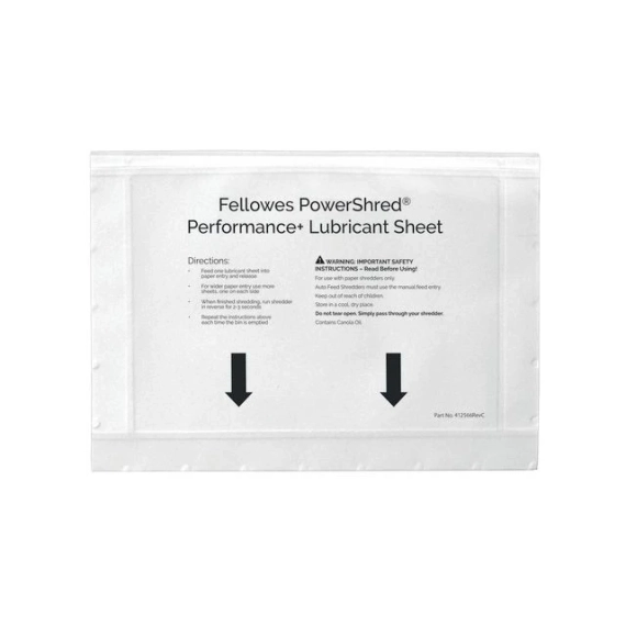 - Optimaliserer ytelsen og forlenger makuleringsmaskinens levetid - Bidrar til å hindre papirstopp - Canola (vegetabilsk) oljebasert - Kan brukes sammen med alle Fellowes® makuleringsmaskiner som kryss-og mikrokutter - 10 oljede ark per pakke