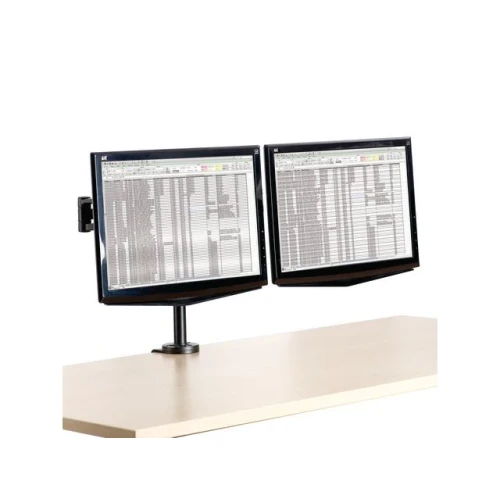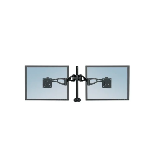Skjermarm, Fellowes® 2 justerbare skjermarmer som kan vinkles for optimal betraktningsvinkel. Armene er fremstilt av aluminiumsrør som du kan gjemme kablene i. - Tar opp et minimum av bordplass - Justerbar skjermarm til to skjermer for den beste betraktningsvinkelen - Kan bære en LCD-skjerm på opptil 10 kg (32''-skjerm) Fremstilt av aluminiumsrør som du kan gjemme kabler og ledninger i