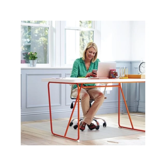 Beskytt harde gulv effektivt med Floortex stolunderlag i PVC. Floortex stolunderlag, 116x150cm, er laget av holdbar PVC og er perfekt for harde gulv. Underlaget beskytter gulvet mot slitasje fra kontorstoler, og den transparente overflaten bevarer det naturlige utseendet. Ideelt for jevne overflater som tre, fliser eller laminat. - Størrelse: 116x150cm - Materiale: PVC - Bruksområde: Harde gulv - Gjennomsiktig og diskret beskyttelse - Slitesterkt og lett å rengjøre