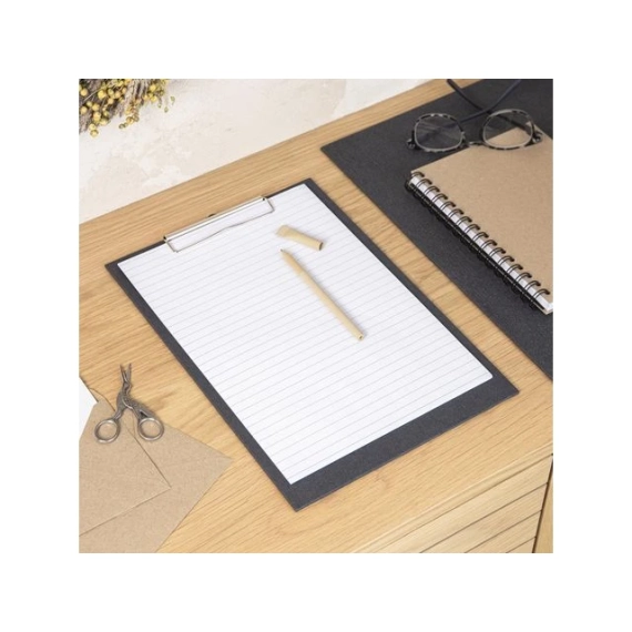 Praktisk og elegant ordrebrett med strikk med metallklype. Metallklypen sikrer at papirene holder seg på plass. - Leveres med 15 ark linjert papir. - Mål (LxB): 33x23 cm - Farge: sort