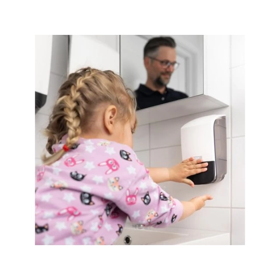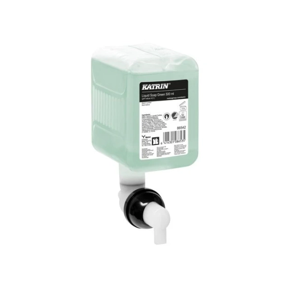 Effektiv og mild flytende håndsåpe med en mild duft av bjørk. Inneholder milde ingredienser, som gjør den meget skånsom mot hendene og gjør den anvendelig til frekvent bruk. Luft- og bakterietett flaske med engangsventil. - System: Såpedispenser KATRIN 0,5L - Volum: 0,5L - Gir opptil 833 doseringer - Lukt: bjørk - pH-verdi: 4,5 - Miljøsertifisering: Svanen og EU Blomsten - Dermatologisk testet