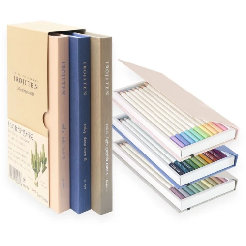 Håndlaget Japanske kunstnerpenner av meget høy kvalitet i oljet sedertre. Irojiten betyr fargeleksikon på Japansk og TOMBOW Irojiten har totalt 90 stk. farger fordelt i tre fargesett med 30 stk. farger i hver. Farge: Woodlands.