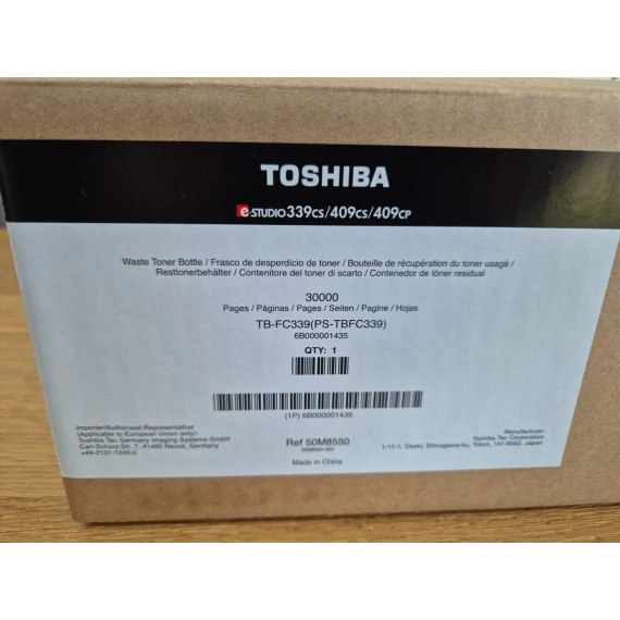 Sikre Toshiba Avfallstoner Beholder TB-FC339 for optimal ytelse til din E-Studio 339 cs. Kapasitet på 50.000 sider. Utforsk serien nå!