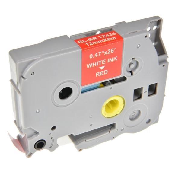 Yaha TZE-435 P-Touch Tape Hvit på Rød 12mm (8m), erstatter Brother TZE-435