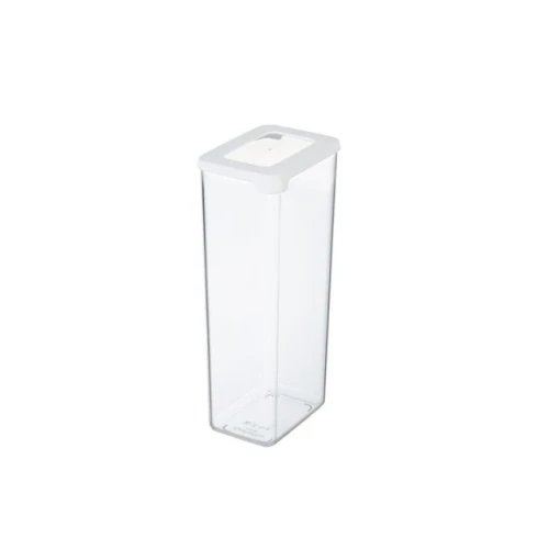 Lufttett og modulær oppbevaringsboks til oppbevaring av tørrmat. Gjør det enkelt å få et ryddig kjøkken. Boksen er transparent med et vindu i lokket som gjør det enkelt å se innholdet fra siden og ovenfra. - Passer til oppbevaring av for eksempel nøtter, pasta, frokostblanding eller mel - Tåler oppvaskmaskin - Kan stables oppå hverandre - Boksen er produsert i SAN og lokket er i PP med kant laget av TPE - Mål: 13x9x28 cm