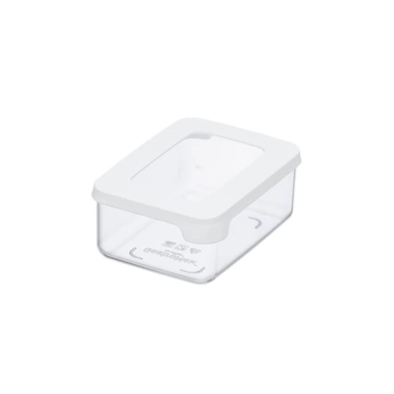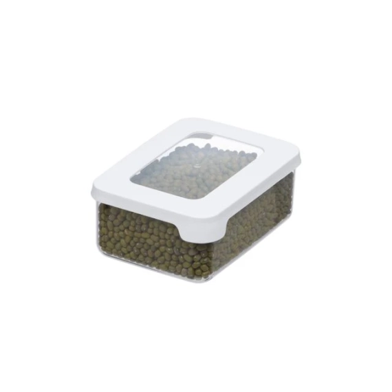 Lufttett og modulær oppbevaringsboks som holder maten tørr og frist. Det gjennomsiktige lokket gjør det enkelt å se hva hver boks i kjøkkenskuffen inneholder. Denne størrelsen er perfekt for oppbevaring av for eksempel krydder, nøtter eller frø.