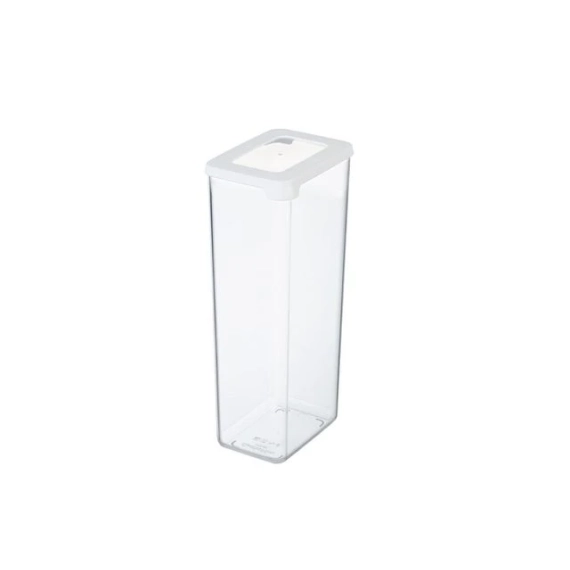 Lufttett og modulær oppbevaringsboks til oppbevaring av tørrmat. Gjør det enkelt å få et ryddig kjøkken. Boksen er transparent med et vindu i lokket som gjør det enkelt å se innholdet fra siden og ovenfra. - Passer til oppbevaring av for eksempel nøtter, pasta, frokostblanding eller mel - Tåler oppvaskmaskin - Kan stables oppå hverandre - Boksen er produsert i SAN og lokket er i PP med kant laget av TPE - Mål: 13x9x28 cm
