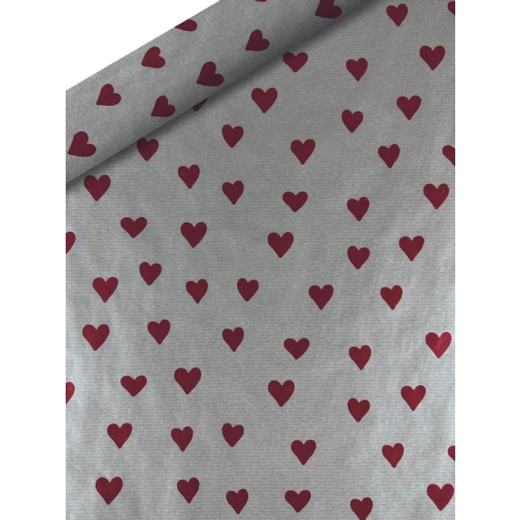 Flott gavepapir til innpakning. Sett et personlig preg på gaven med dette gavepapiret rød kraft og kraft med store hjerter. - Tykkelse: 70g - Størrelse: 10m x 70cm - Ensfarget kraft - rød, sølv,gull ass