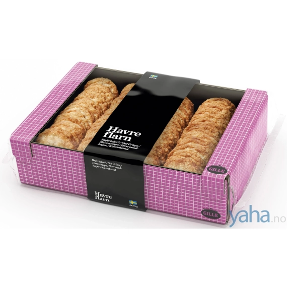 Verdens mest solgte Havreflarn - Gullmedaljevinner! Tynn og sprø småkake bakt med havregryn og er uten melk. - Allergener: gluten, melk - Forbrukerpakning i lekker rosafarget eske med frontvindu hvor du ser småkakene.