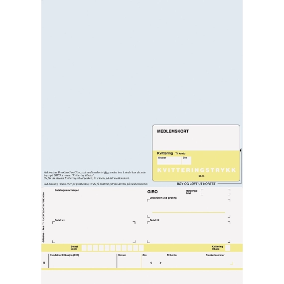 Giro i 90g papirkvalitet med plast på baksiden av medlemskortet