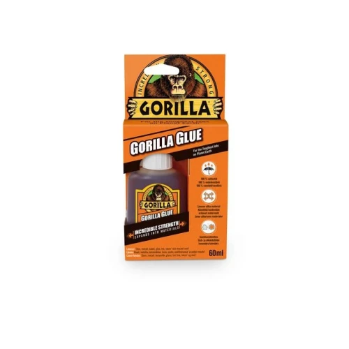 Du har aldri brukt et tilsvarende lim. Gorilla Glue er USA's favoritt ettersom det fungere der andre lim mislykkes Gorilla Glue er 100% vanntett, tåler både høye og lave temperaturer, vær, vind og alt annet du kan tenke deg. Det limer stein, metall, keramikk, glass, tre og mye annet. Den vannaktiverte polyuretanformelen ekspanderer inn i materialet og skaper en utrolig sterk vedheft. Når den først har herdet slipper den aldri taket. Når gjennomherdet kan den både slipes og overmales. - Allsidig: Gorilla Glue fungerer på nesten alle overflater, innendørs og utendørs. Limer enkelt tre, stein, metall, keramikk, skum, glass mm! - Sikkerhet: 100 % vanntett - D4. Fuktighet er ikke noe problem - ikke engang under vann. - Temperaturbestandig: Gorilla Glue tåler ekstreme temperaturer - fra - 40ºC til + 100ºC - Slitesterk: Kan slipes, overmales og er motstandsdyktig mot flekker. Gjør det enkelt å få en fin finish. - Utrolig sterk: Den ekspanderer opp til 3 ganger sin egen størrelse under herding - Bruksområder: For innendørs og utendørs bruk. - Tid: Presstid 60 minutter