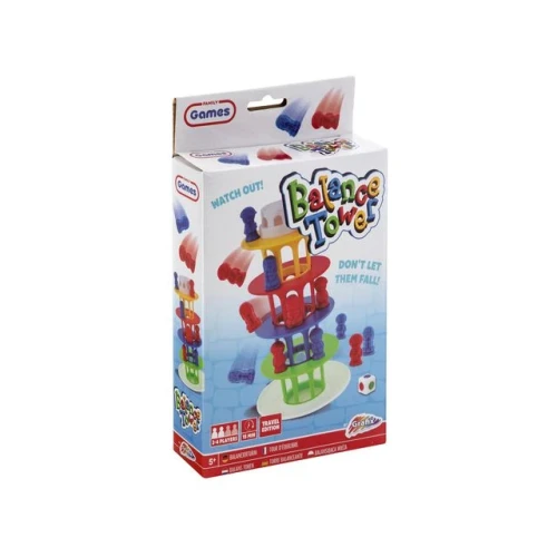 Balanser det skjeve tårn i Pisa! Reisestørrelse, beregnet tid ca 15 min, egnet for 2 til 4 spillere, passer for barn 5+. Mål på esken 24x14,5x4 cm.