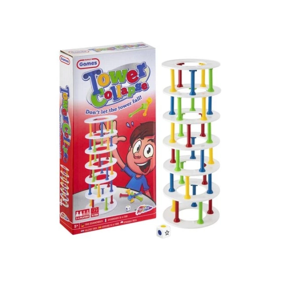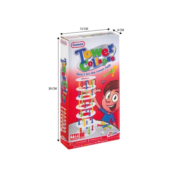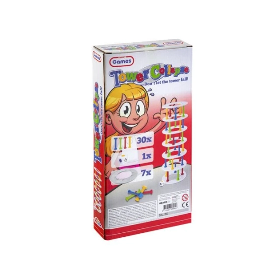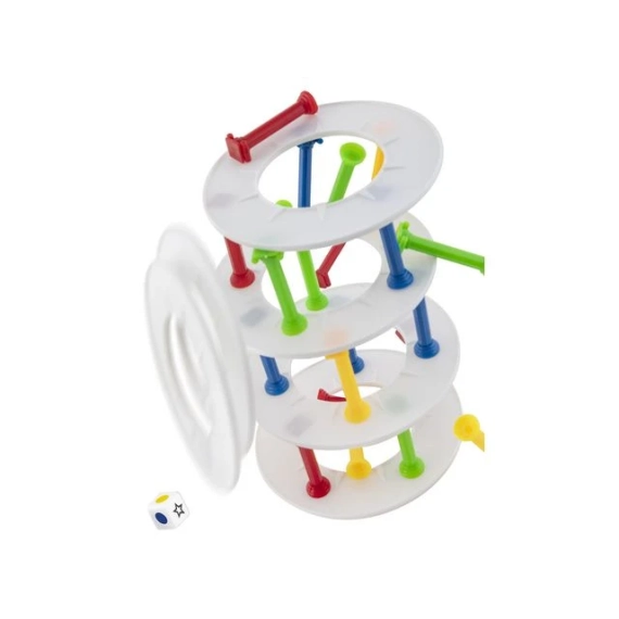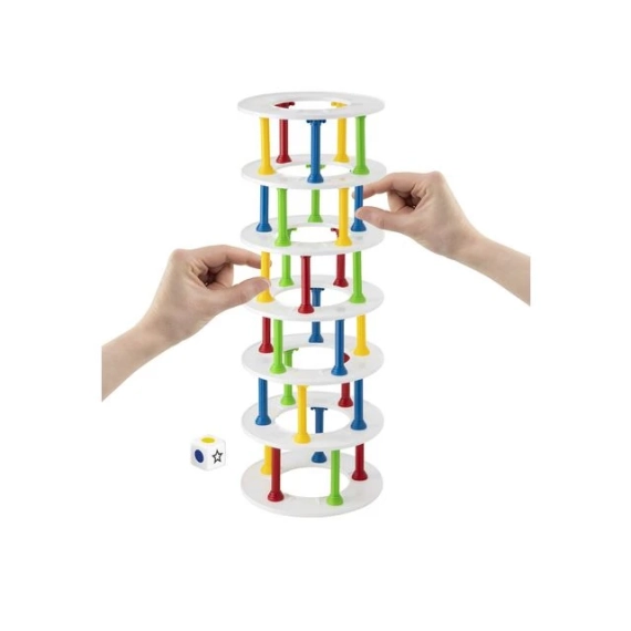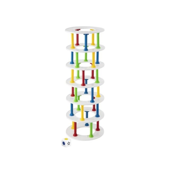 Bygg tårn og unngå at det faller sammen! Inneholder 30 pillarer i 4 farger, 7 ringer og en terning. Passer til barn mellom 5 til 8, varighet er ca 15 min, 2 til 4 spillere. Mål på eksen 30x15x4 cm.