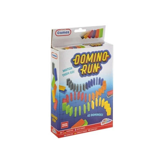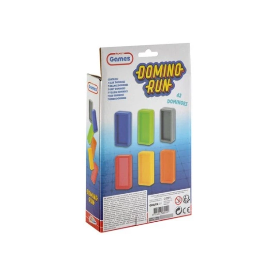 42 fargerike dominobrikker. Reisestørrelse, egnet for barn over 5 år. Mål på esken 24x14,5x4 cm.