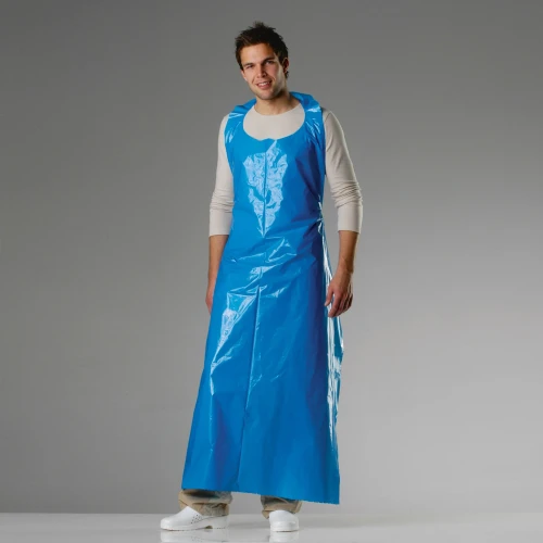 Engangsforklær perforert rivekant og hull for oppheng.