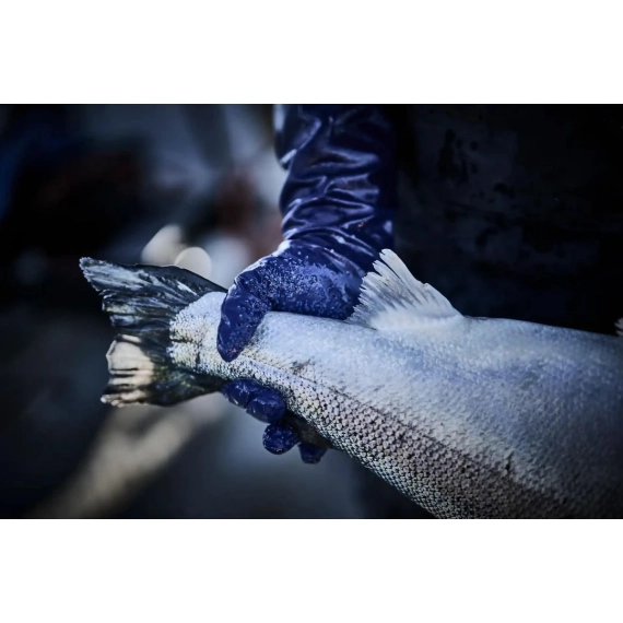 Granberg 8200 er den ideelle hansken for krevende miljøer som krever både presisjon og grep. Nitrilbelegget med kraftige granulat gir et eksepsjonelt våt-, olje- og tørrgrep, spesielt tilpasset håndtering av fisk og andre glatte overflater. Det myke bomullsfôret gjør hansken komfortabel for lange økter, samtidig som det absorberer svette og reduserer håndtretthet. Fleksibel og slitesterk dette er en hanske som kombinerer følsomhet med beskyttelse, og er like egnet for sjømatproduksjon og slakteri, som for jordbruk og kjemikaliehåndtering. Godkjent for direkte kontakt med alle typer matvarer, inkludert fettholdige produkter (EN 1186). - Nitrilhanske med granulat for overlegent grep - Svært god motstand i våte og oljete miljøer - Bomullsfôret innside for komfort og svetteabsorpsjon - Fleksibel og slitesterk for lang levetid - Godkjent for kontakt med alle typer næringsmidler - Lengde: 39cm - Farge: Blå - EN 388, EN ISO 21420, EN 1189