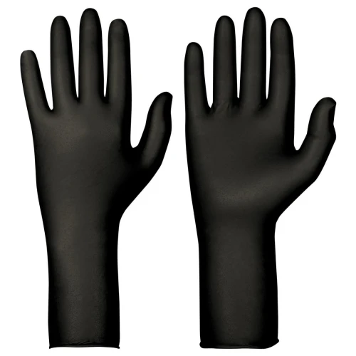 ESD-hansker (Elektrostatisk dissipative egenskaper) for engangsbruk i sort pudderfri nitril. Egner seg til blant annet montering i elektronikkindustrien, bilindustrien, håndtering av fotografisk film, optikk, laboratorier, tatoverings-studio, politi og sikkerhetsfirmaer. - Høy styrke og elastisitet for presisjonsarbeid - Elektrostatisk dissipative egenskaper - Høy styrke og elastisitet - Testet og godkjent for et utvalg kjemikalier - Fingertupper med mikrotekstur for best mulig grep - Inneholder ikke silikon - Vekt 9.1 ± 0.4 g - AQL 1,5, EN 420:2003 + A1:2009, EN 374:2016, EN 16350:2014, CE Cat.III