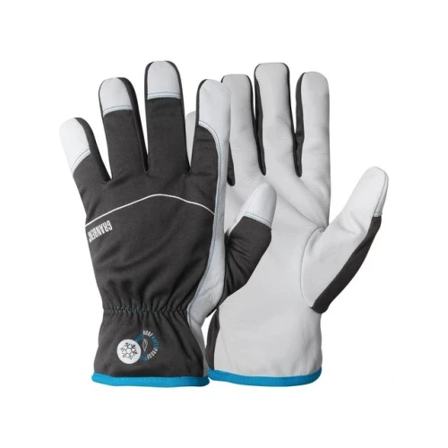 Arbeidshansker, lettfôret. Skinnhanske kvaliteter, kombinert med ProTex® vind- og vanntett pustende membran. Varmt og mykt fleecefôr. Mykt og sterkt geiteskinn gir god fleksibilitet og grep for håndtering av gjenstander. Beskytter mot fuktighet og gir god varmeisolasjon. Passer til: Kuldedager, monteringsarbeid i kalde og/eller våte forhold med høye krav til bevegelighet, fleksibilitet og grep (jordbruk, bilindustrien, bygg og anlegg, olje, gass og gruvedrift). - STANDARDER OG MERKING: EN 420:2003 + A1:2009, EN 511:2006, EN 388:2016+A1:2018, CE Cat.II - Vanntett - For presisjonsarbeid - Tørrgrep, våtgrep - Hvit, grå