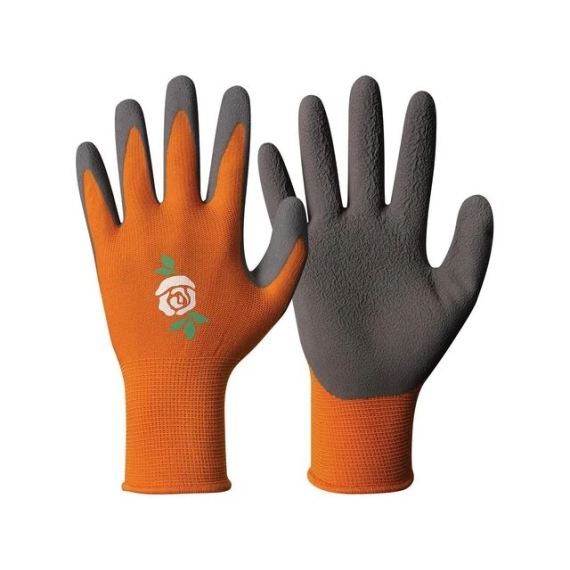 Hagehansker med lateks skumbelegg, sømløst nylonfôr. Mykt, fleksibelt lateksskumbelegg gir godt grep og høy berøringsfølsomhet. Komfortabel, pustende nylonhåndbak. Fargerikt opphengskort for feste på pigg. Passer til: Hagearbeid (jordbruk, logistikk og lager, vedlikehold, detaljhandel). - STANDARDER OG MERKING: EN ISO 21420:2020, CE Cat.I - Håndflate-dyppet - Tørrgrep, våtgrep - Tettsittende - Grå, oransje - Lengde: 21-22 cm