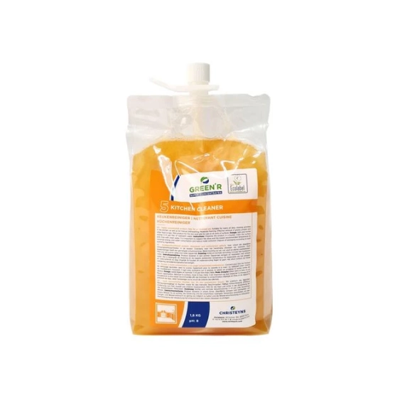 Green'R Superconcentrates 5 Kitchen cleaner er et universelt rengjøringsmiddel for daglig bruk på kjøkkenet. Dette produktet kan brukes for rengjøring av alle vaskbare overflater, men også under manuell oppvask. For dosering i bøtte/moppebøtte. Green'R Superkonsentrat konseptet gjør daglig rengjøring raskere, tryggere og mer effektivt. Et totalkonsept som består av 5 ultrakonsentrerte rengjøringsmidler for interiør-, sanitær-, gulv- og kjøkkenrengjøring. - pH-verdi: 8 - Egnet for fjerning av fett, proteiner og matrester - Fare- og sikkerhetsinformasjon: - H315 - Irriterer huden. - H318 - Gir alvorlig øyeskade.