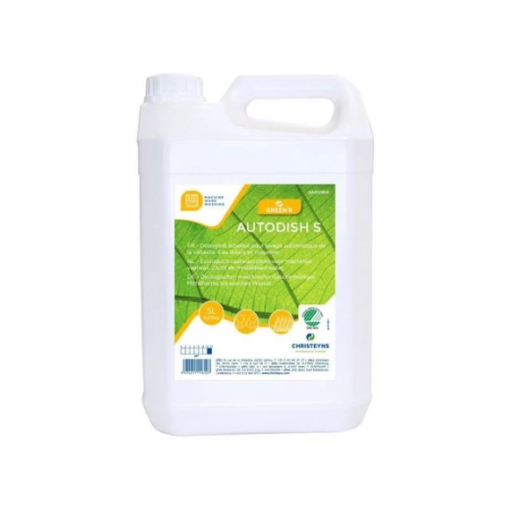 GREEN'R Autodish S er spesialdesignet for maskinoppvask i mykt til moderat hardt vann. Har god alkalitet for å spre og løse opp matrester og fett. Flytende alkalisk maskinoppvaskmiddel til automatisk dosering. - pH-verdi: 11–12 - Fare- og sikkerhetsinformasjon: - H290 Kan være etsende for metaller - H314 Gir alvorlige etseskader på hud og øyne