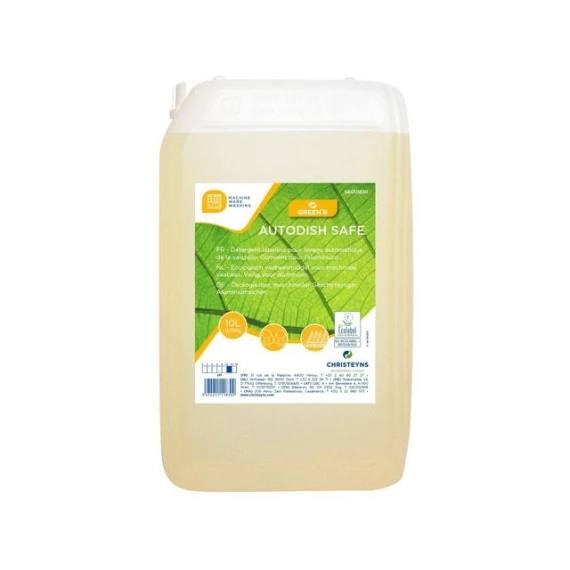 GREEN'R Autodish Safe er en høykonsentrert væske, beregnet for oppvask under alle vannhardhetsforhold. Dette produktet renser og avfetter veldig effektivt selv de mest gjenstridige flekkene ved lave konsentrasjoner. Formelen fremmer fjerning av vanskelige flekker (kokt og forkullet fett, tomatsaus, te og kaffe, vin, sjokolade, fett, ol.). pH-verdi: 11 Fare- og sikkerhetsinformasjon: EUH210 Sikkerhetsdatablad er tilgjengelig på anmodning
