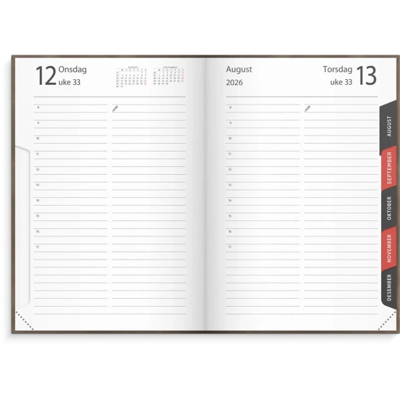 Oppdag den perfekte kombinasjonen av eleganse og funksjonalitet med Kalender 2026 Libra Colore Brun. Denne vakkert innbundne dagboken i imitert skinn er en del av den populære Libra-serien, kjent for sitt praktiske format og sofistikerte design. Med en side per dag har du rikelig med plass til å organisere avtaler, notater og viktige påminnelser. Det utstansede månedsregisteret og det praktiske lesebåndet gjør det enkelt å holde oversikt og finne frem i kalenderen. Den kompakte størrelsen på 123x176mm gjør at den passer perfekt i vesken, slik at du kan ta den med deg overalt. - Elegant og praktisk designet dagbokkalender for 2026 - Innbundet i høykvalitets imitert skinn - En dag per side gir god plass til å skrive ned avtaler, oppgaver og notater - Utstanset månedsregister - Hjørneperforering og lesebånd som markerer hvor du er i kalenderen - Hel side på lørdag og søndag - Antall sider: 408 - Papirvekt: 60g - Format: 123x176mm - Farge: Brun