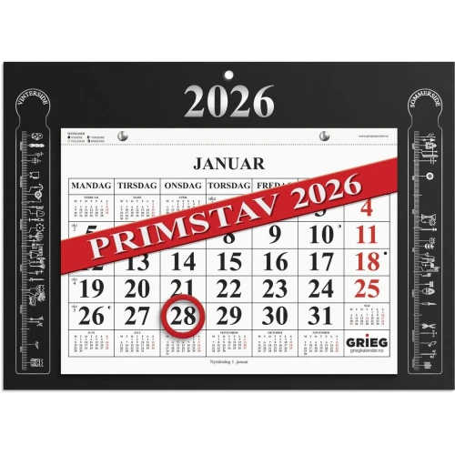 Grieg Magnetkalender 2026 Primstav sort