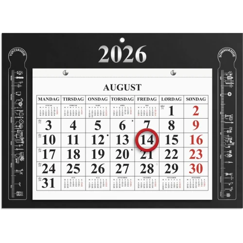 Veggkalender med primstavsymboler foran og beskrivelse av primstaven på baksiden. Den praktiske magnetringen markerer tydelig dagens dato og gir deg god oversikt. Kalenderen har månedsoversikt i tillegg til en oversikt over hele året. Med månefaser og helligdager. Opphengshull gjør det enkelt å henge den på veggen. Kalenderen er miljømerket FSC®, som betyr at hele produktet er produsert med papir og annet trevirke fra et ansvarlig og bærekraftig skogsbruk. - Følger kalenderåret - Primstavsymboler - Magnetring for datomarkering - Opphengshull - Månedsoversikt for hele året på hvert blad - Helligdager - Månefaser - Liggende månedsoppslag - 12 sider - 80g papir - Format: 205x150mm, Bakplate: 275x200mm