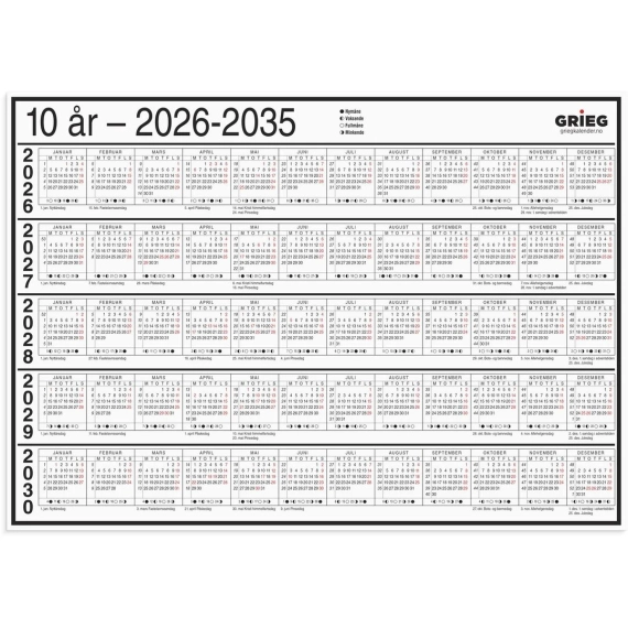 Grieg Platekalender A4 10 år 2026-2035