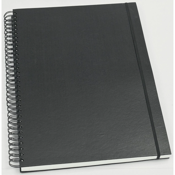 Spiralisert rygg, strikk for lukking og perforert rivekant på arkene