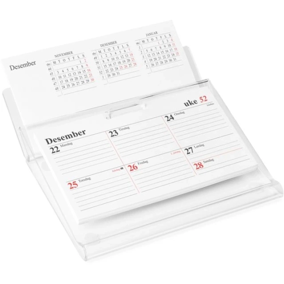 - Bordstativ i klar plast - Passer til Bordkalender uke - Med Flip-over funksjon - Med plass til penn foran kalenderen - Stativmål: 196 x 188 x 45 mm.