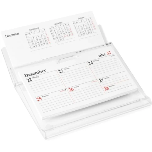 - Bordstativ i klar plast - Passer til Bordkalender uke - Med Flip-over funksjon - Med plass til penn foran kalenderen - Stativmål: 196 x 188 x 45 mm.