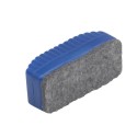A mini sized (62mm x 25mm) Magnetic Whiteboard Eraser which is compatible with all magnetic board surfaces, it can be used either dry or with whiteboard cleaner. The body is blue plastic with a felt brush clean surface.