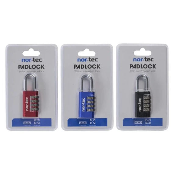 Hengelås 28mm med kode Nor-Lock. En lås med 4 sifret kombinasjonslås i assorterte farger. Til garderobeskap og koffertlås. - Tykkelse på bøylen 5,5mm