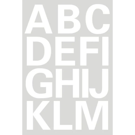 Sorte bokstaver av vannfast PVC-folie. Høyde 25 mm. Liten pakke i format 9x12cm. Permanent klebende. 1 ark pr. pakke.